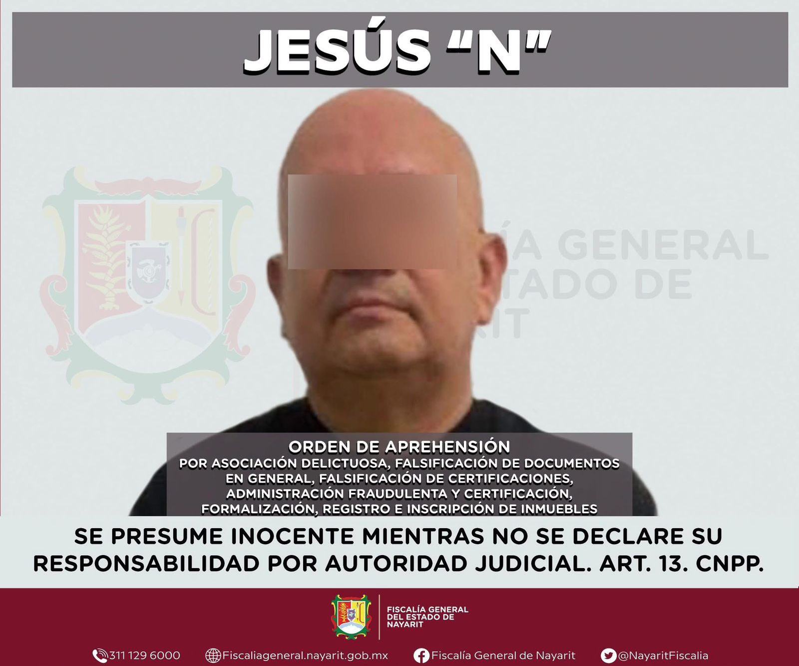 BAHÍA TIMES, Tepic, Nayarit.- La Fiscalía General del Estado de Nayarit, a través de la Agencia de Investigación Criminal, ejecutó una orden de aprehensión en contra de Jesús “N”, notario público en funciones, por su probable participación en hechos que la ley tipifica como los delitos de: